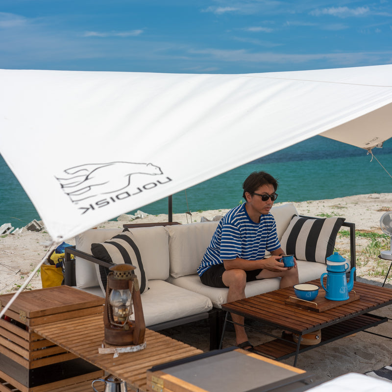 My camping motto is “camp as if you were relaxing in your living room”. Every weekend, I load my camping gear and furniture into my car and travel around Japan in search of scenic views. Every season, I look for a spot with great view, and when I find it, I pitch my glamping tent and arrange my favorite furniture the way it fits perfectly in the surroundings. This is how the perfect home created away from my home is made.